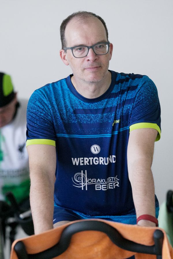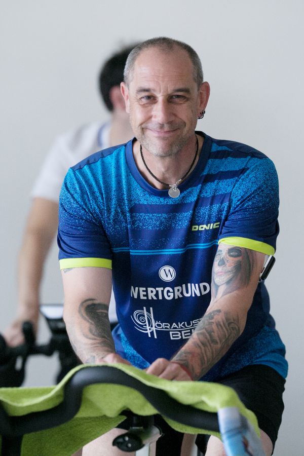 Christian Homann beim Spinning / Abteilungsleiter Sven Liebel ackerte für den guten Zweck.
