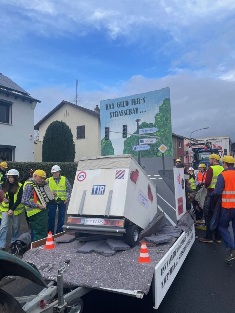 Mit viel Spaß, guter Laune und jeder Menge närrischem Einsatz waren wir beim Orwischer Rosenmontagszug unterwegs. Verkleidet als Bauarbeiter und mit unserem Motivwagen haben wir uns einem Thema gewidmet, das in Orwisch wohl jeder kennt: dem Sanierungsstau auf unseren Straßen. Frei nach dem Motto: