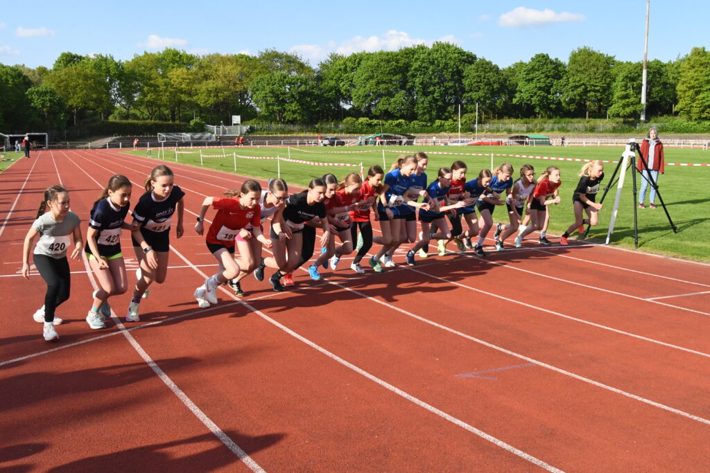 Über den Stadioncross von 1500m starteten Carlotta Wusch W10 in 7:29,30 min mit Platz 4 und Fiona Rhein W11 in 8:57,32min mit Platz 7.